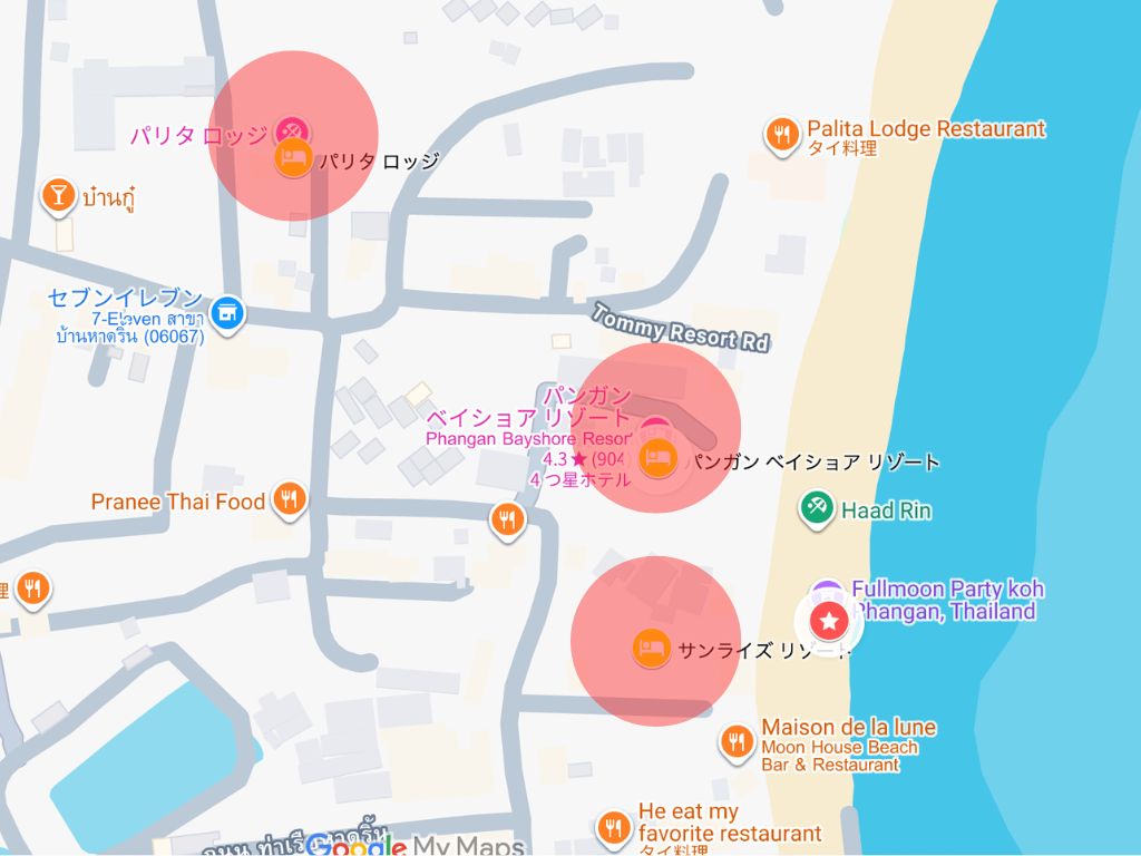 フルムーンパーティーに参加するなら、まず宿を探すエリアとして有力なのがハッドリン(Haad Rin)周辺です。