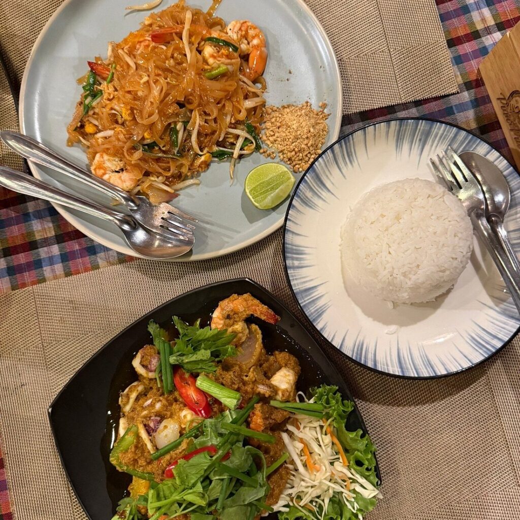 料理はタイ料理が中心で、しっかり食べたい時に向いているタイプです。特に、カレー系、パッタイ、チャーハン、ココナッツシェイクのような、旅行中でも頼みやすい定番どころと相性が良さそうです。