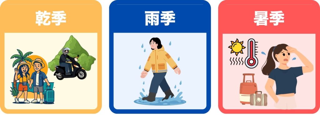 もちろん、初めてで不安が強いなら乾季はわかりやすい選択です。