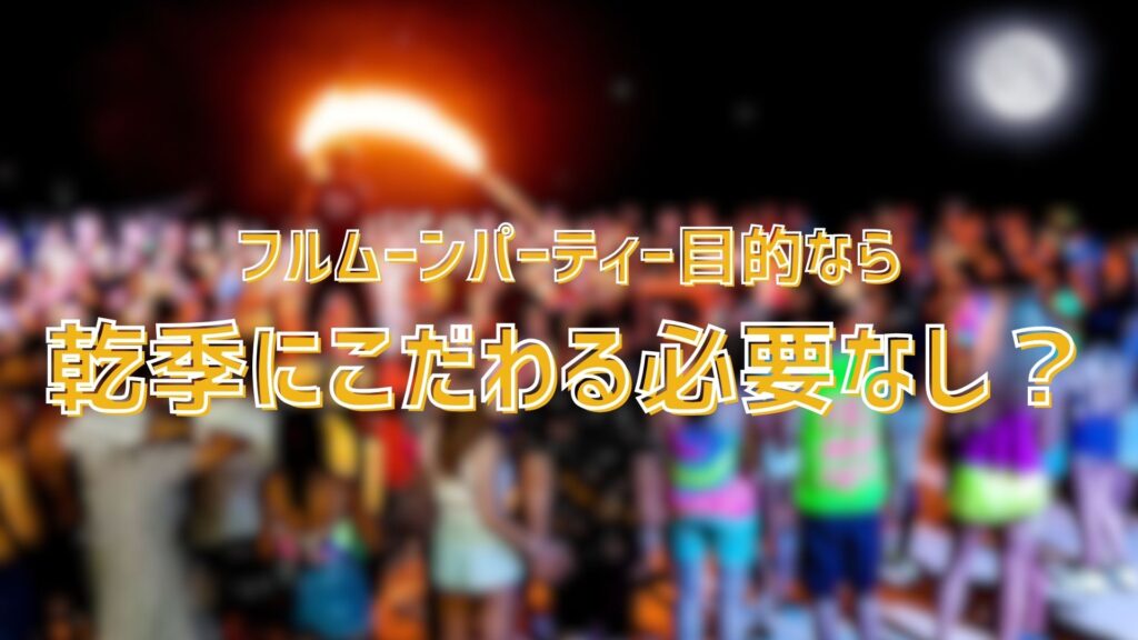 フルムーンパーティーは月に一度開催されるので、イベントそのものは乾季限定ではありません。