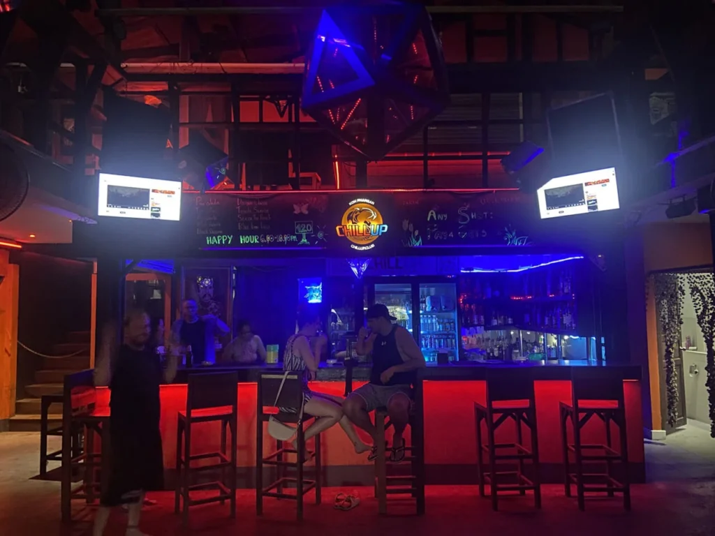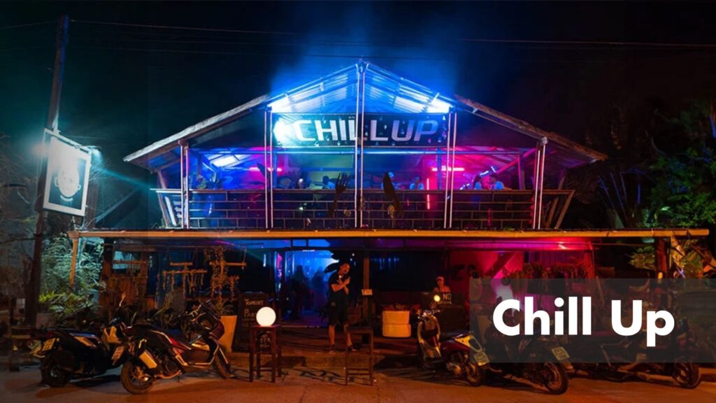Chill Up は、今回紹介する中ではかなり入りやすく、使いやすい会場です。室内なので天候の影響を受けにくく、Thong Sala(一番賑わっているエリア)のメイン通り沿いでアクセスも楽なので、「今日はどこか行きたいけど、秘境系や大型フェスまでは重くしたくない」という日にちょうどいいです。参加者のレビューでも、コンパクトだけどちゃんと踊れる、肩肘張らずに入れる、音楽好きがふらっと集まっている という印象が見えます。パンガンらしい野外感とは少し違いますが、滞在中の選択肢としてかなり優秀です。