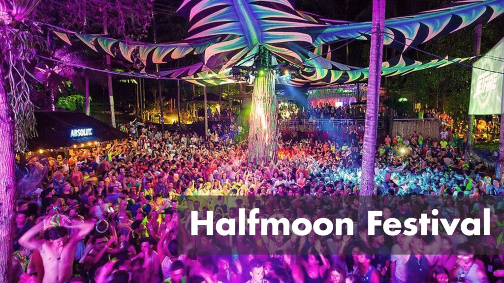 フルムーンパーティーの次に名前が出やすいイベントですが、雰囲気はフルムーンとは全く違います。大箱らしい華やかさや多国籍な雰囲気で盛り上がりがありつつ、会場演出や音のまとまり方がよく、参加者の感想でも「規模は大きいのに荒すぎず、世界観に入りやすい」という印象が目立ちます。ビーチクラブの開放感とジャングル会場の没入感を両方味わえるので、派手さも欲しいけど、音楽や空間づくりにもちゃんと満足したい人に向いています。名前の通り、半月の時に開催されるので月に2回あります。Day 1 は Harmony Beach Club、Day 2 は Halfmoon Magic Forest / Magical Forest という2会場構成です。